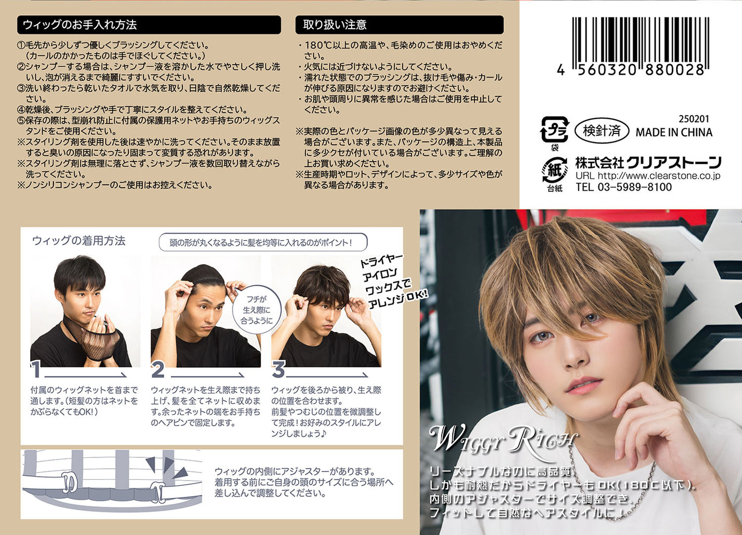 ビジネスシーンからワイルド系まで揃うWIGGY RICHメンズシリーズ!ワイルドなミディアムウルフワックス、ドライヤー、手洗いOKでへアネット付き! 価格もリーズナブル! ウィッグ内側のアジャスターでサイズの調節もできます。 |