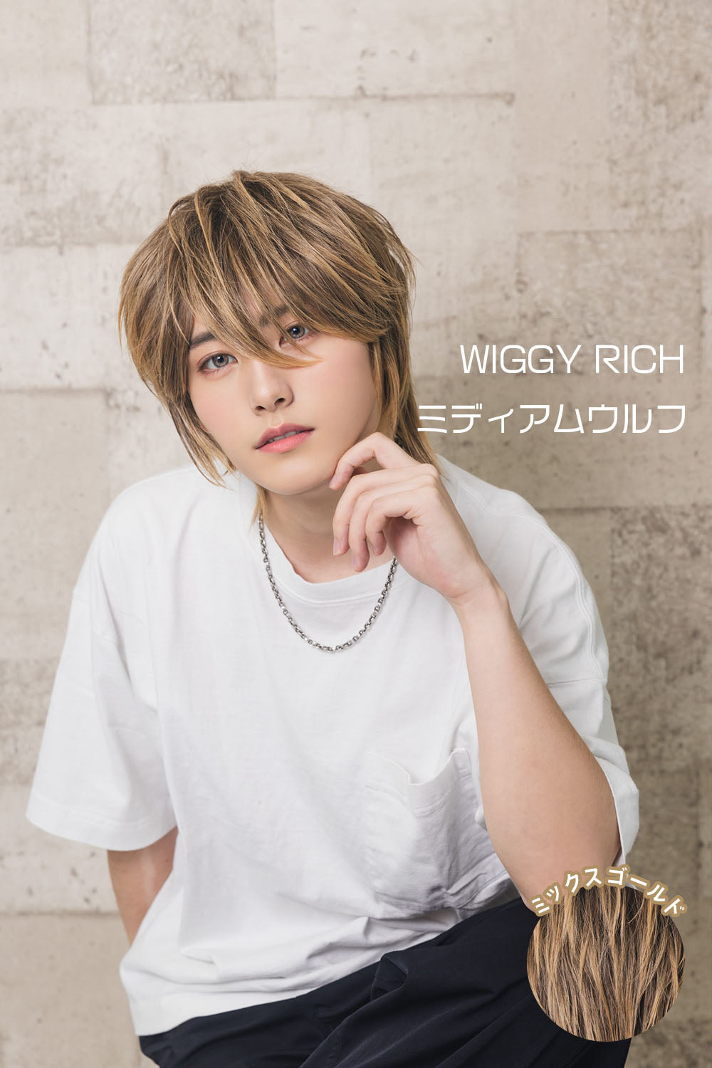 コスプレ小物 ウィッグ WIGGY RICH ミディアムウルフ メンズ ライトブラウン/ダークブラウン【クリアストーン】